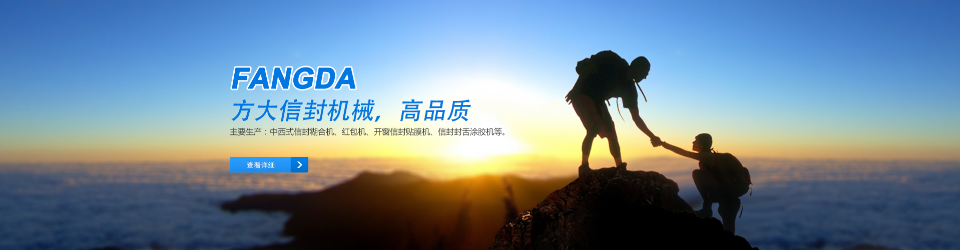 瑞安方大信封機(jī)械有限公司,是專業(yè)生產(chǎn)信封機(jī)糊合設(shè)備系列產(chǎn)品的企業(yè),主要產(chǎn)品有:中西式信封糊合機(jī)、紅包機(jī)、開窗信封貼膜機(jī)、信封封舌涂膠機(jī)等。實(shí)力來自規(guī)模,品質(zhì)源自專業(yè)。我廠擁有專業(yè)老練的工程設(shè)計(jì)人員,經(jīng)驗(yàn)豐富的生產(chǎn)安裝人員,嚴(yán)謹(jǐn)認(rèn)真的質(zhì)量檢驗(yàn)人員,從而保證了所生產(chǎn)機(jī)械的優(yōu)良品質(zhì)。此外,我廠也將從技術(shù)上、性能上不斷改進(jìn)提高,以更好的滿足客戶的需求。“客戶至上,服務(wù)為本”是我廠長(zhǎng)期一貫的服務(wù)理念,從安裝、測(cè)試、保養(yǎng)、維修等售后服務(wù),我們會(huì)給予客戶充足的信息資訊與技術(shù)支持,因此在業(yè)界獲得良好的口碑及信譽(yù),您的滿意是我們的榮耀!歡迎您來電查詢、來人參觀,我們一定能給你滿意的答復(fù)!秉承“顧客至上,銳意進(jìn)取”的經(jīng)營(yíng)理念,堅(jiān)持“客戶為先”的原則為廣大客戶提供溫馨的服務(wù)。歡迎惠顧!